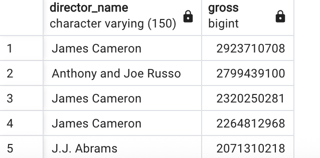 SELECT director_name, gross